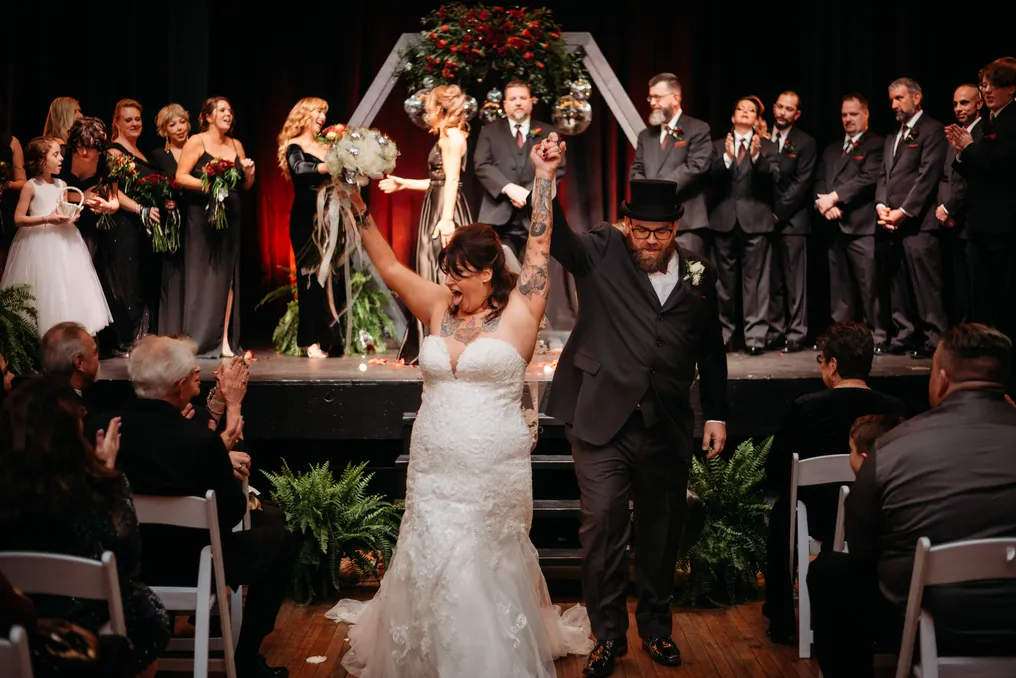 The Woodward Theater, established in 1913, is a historic music venue & event hall located in Over The Rhine in Cincinnati. We offer a unique, yet versatile ceremony & reception space that enables couples to represent their personal style. Our rental fee includes chairs, tables, linens & bar glassware. We offer all day access starting at 9am, with the option of a room flip during the event. We also provide full sound production, including House Engineer, use of our historic exterior poster box display, door security, wifi, a bridal area & over head bistro lights. There are three beverage packages to choose from, all of which include 24 beer taps featuring local favorites, wine & champagne. Lastly, there is plenty of room for dancing in front of our stage, surrounded by a gilded proscenium.