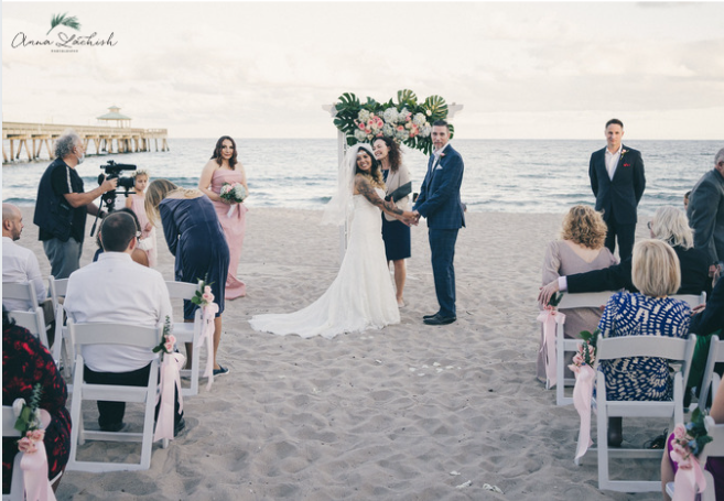 Stylish and intimate, our Wyndham resort is the perfect place to host a beautiful Deerfield Beach wedding. With access to the pristine white sands of Deerfield Beach and breathtaking floor-to-ceiling ocean views, our hotel provides an exquisite place to celebrate your most meaningful day. Wyndham Deerfield Beach Resort ensures that your South Florida wedding is effortless for all involved. Resort amenities include access to the white-sand beach located directly across the street, outdoor heated pool and hot tub, poolside dining and refreshments and live entertainment every weekend at the Patio Bar and Grill. The resort also features two on-site restaurants; a 24-hour, fully equipped health and fitness center; 24-hour business center; valet parking; and concierge services. The hotel’s on-site market sells snacks and personal-care items. We look forward to welcoming you to the Wyndham Deerfield Beach Resort!