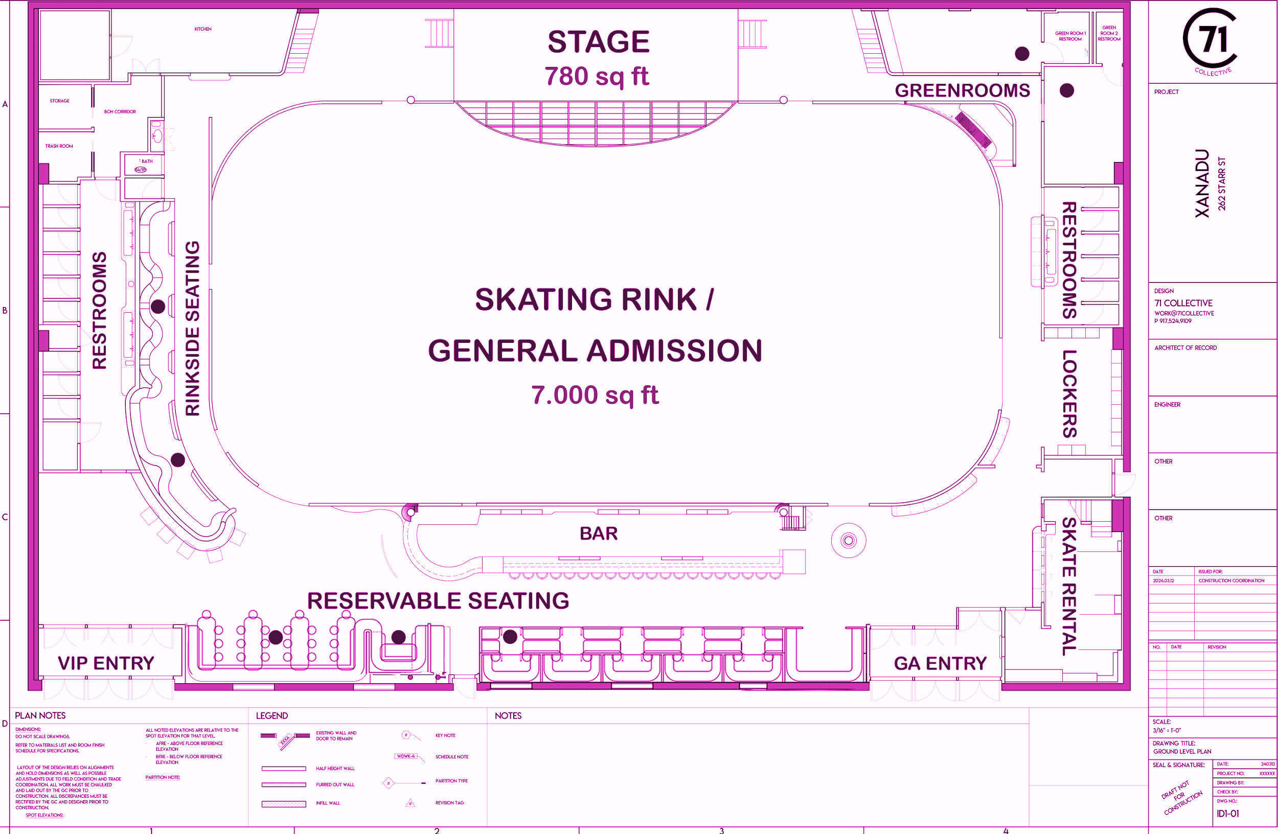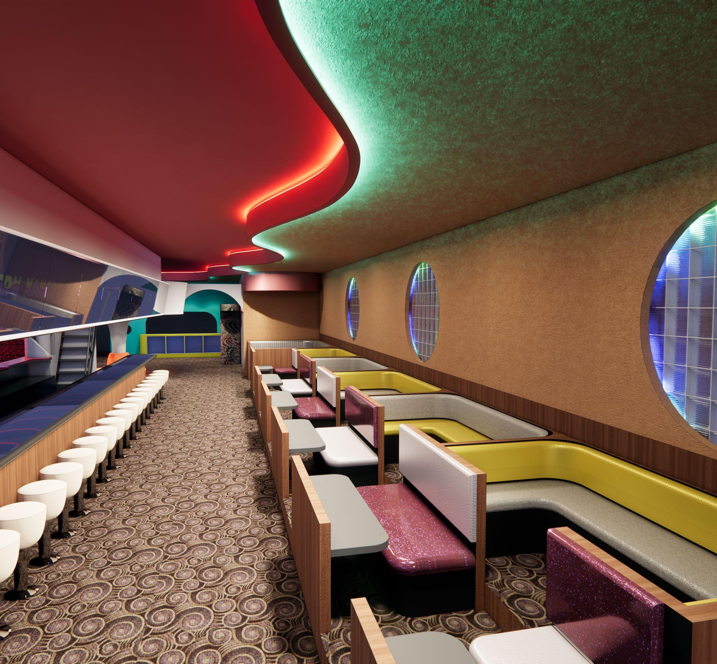 -catering kitchen -full licensed 40 feet bar -cozy booths and rink-side cabanas -karaoke rooms -old school candy concession -state-of-the-art sound system -jaw-dropping custom lighting -professional stage.