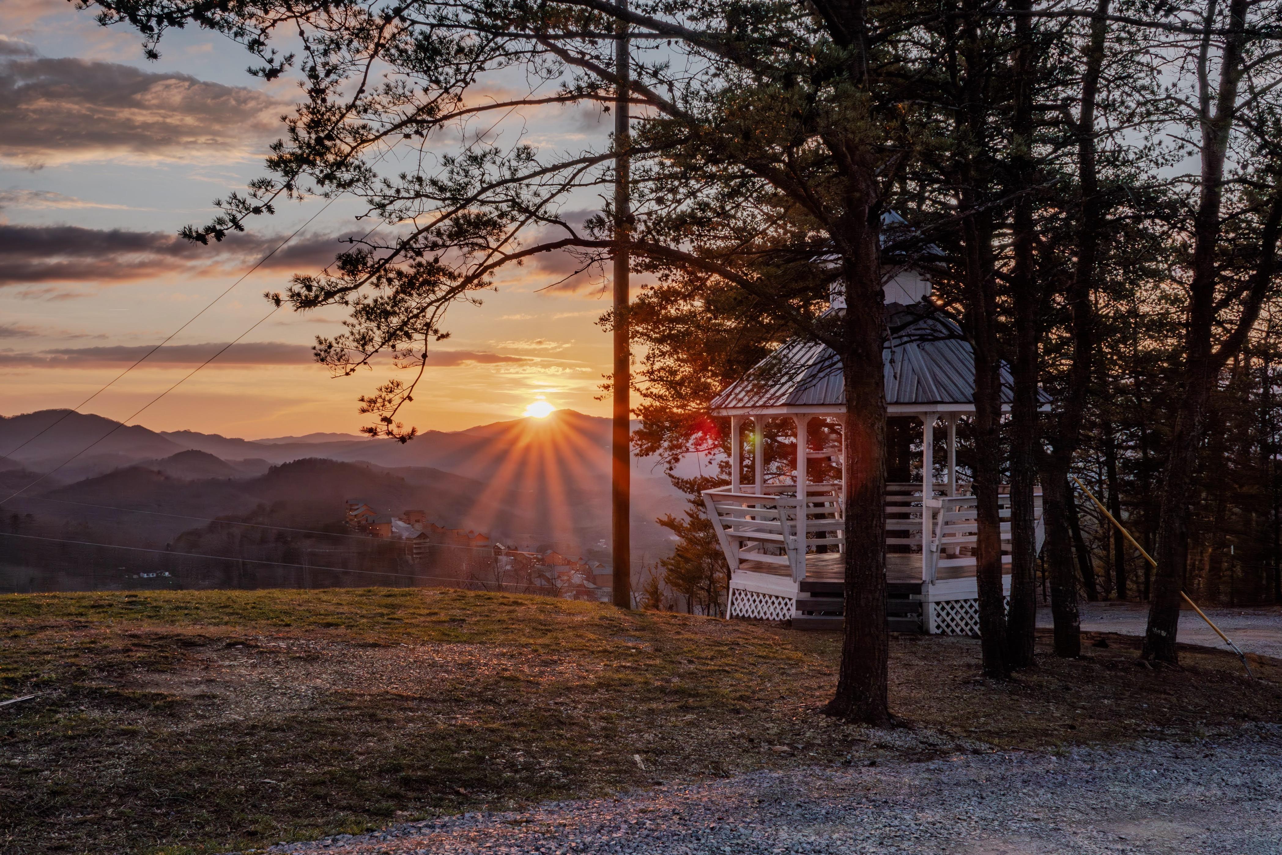 Our wedding venue at The Vieux is very versatile. You can choose to get married in front of the mountains up by the gazebo and outside chapel, on the balcony of The Vieux in front of Mt. Le Conte (if it's a small wedding party), in the back yard of The Vieux surrounded by the trees or inside in front of the floor to ceiling stone fireplace. Wherever you choose, your wedding will be unique and just as you choose it to be. We don't charge an exorbitant amount for our venue because we want you to be able to afford to stay at The Vieux and have your wedding all rolled into one at a great price. Some choose to do everything DIY while others choose to have a wedding coordinator, catered food and decorators come to prepare everything for them. Whatever you choose is up to you so it can be your perfect day on The Mustard Seed property at Your Home Away From Home in Pigeon Forge, Tennessee. All of your guests can stay too in our 7 other cabins on the same 12 acres/mountain top.