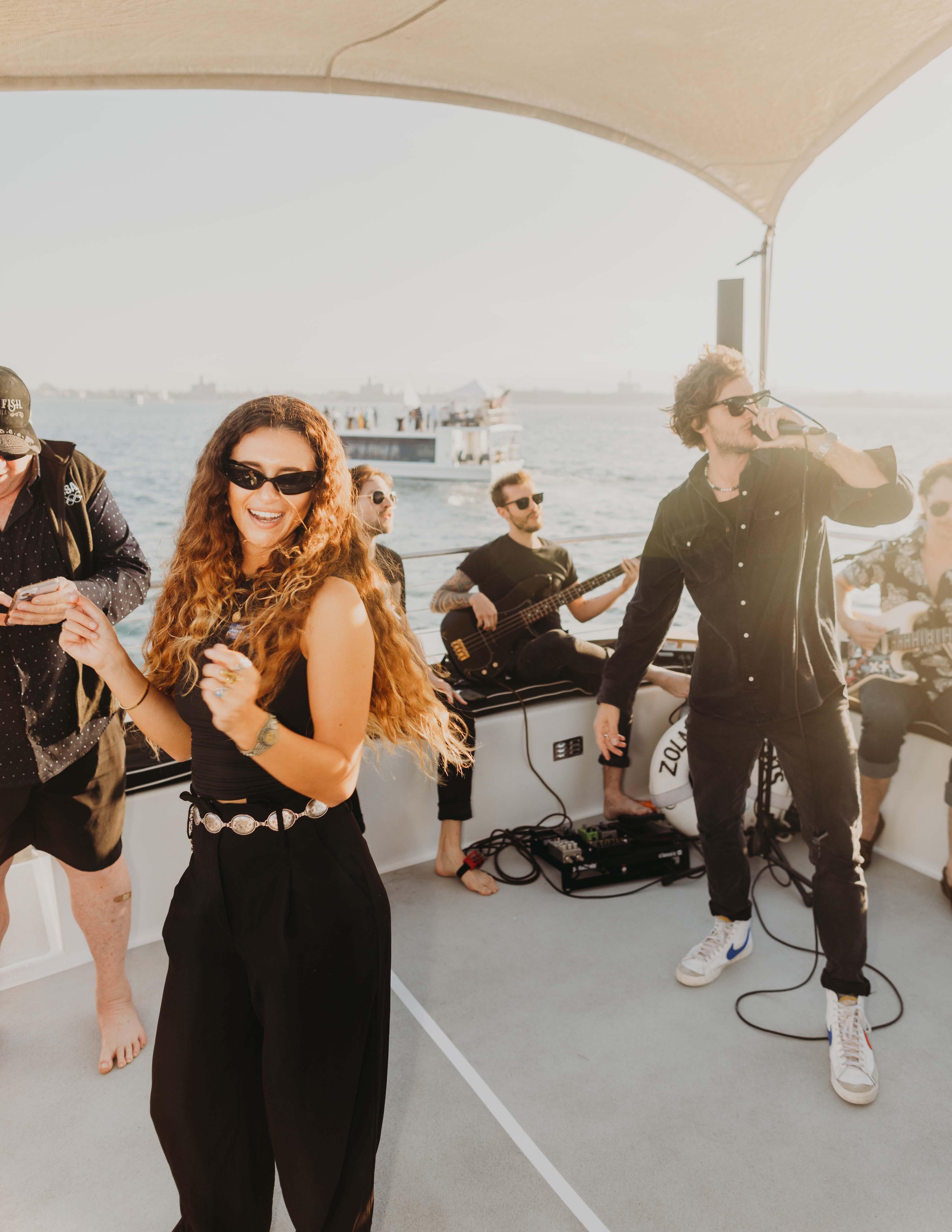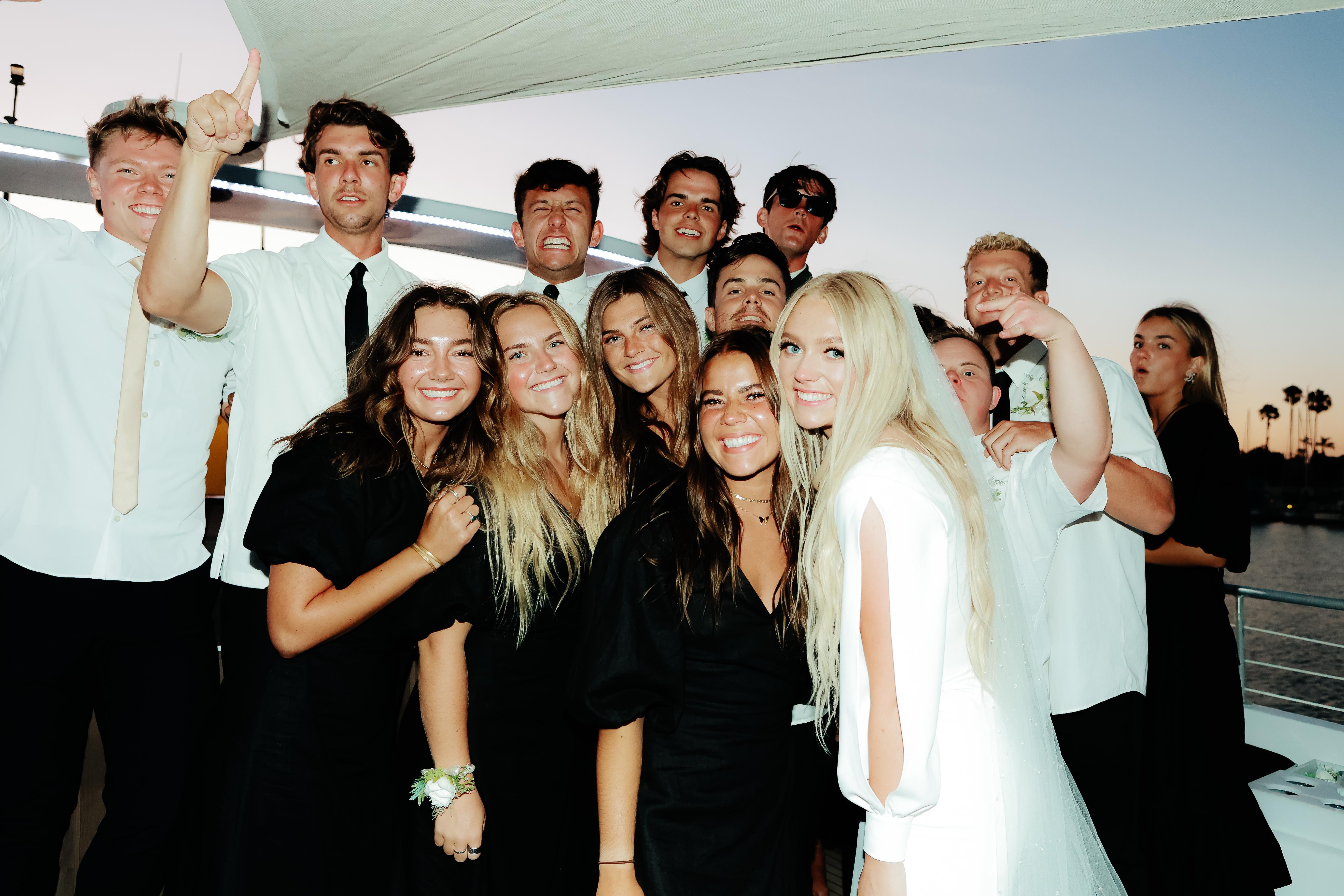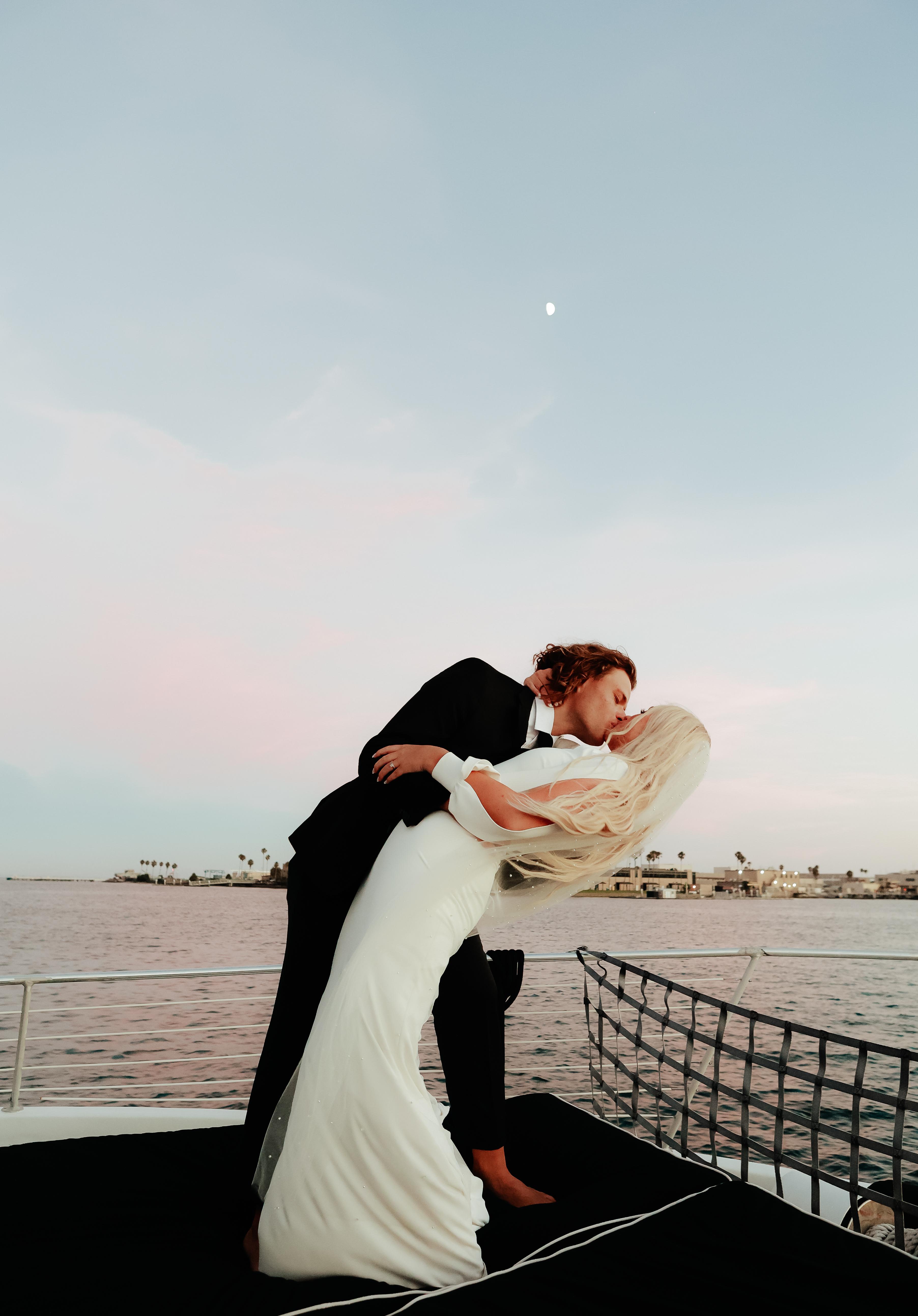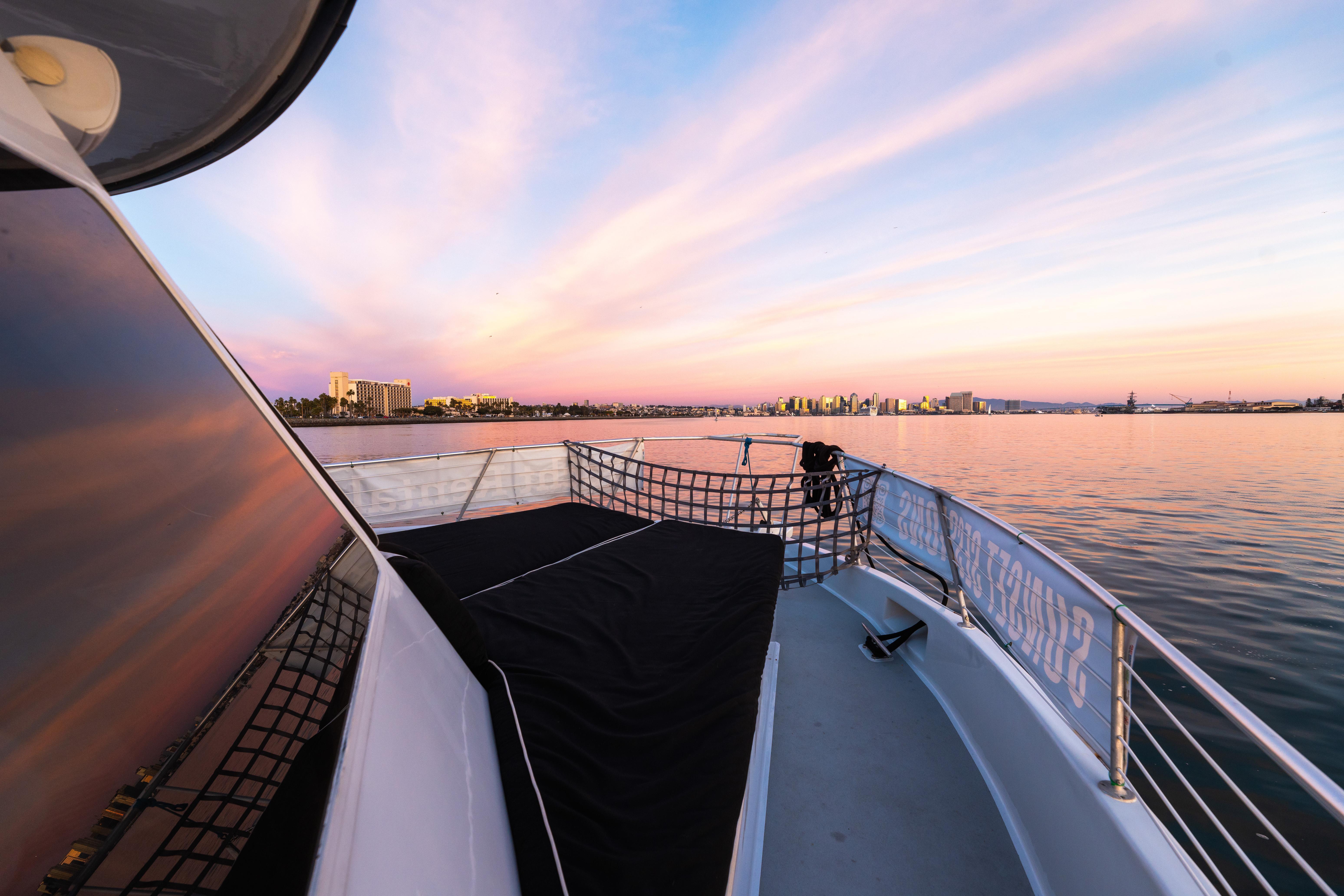 Exchange vows aboard the Nerissa motor yacht, the ultimate waterfront wedding venue on San Diego Bay. With a full bar, spacious dance areas, and panoramic views, the Nerissa offers an unforgettable setting for your special day. Host your ceremony on the upper deck with world-class scenery, then celebrate with catering, live music, and entertainment tailored to your vision. Our onboard chefs craft mouthwatering menus to suit your budget, while a state-of-the-art sound system transforms any space into the perfect dance floor. Please note, the yacht accommodates a maximum of 49 passengers, including service personnel such as caterers and photographers. For larger guest lists, consider hosting a rehearsal dinner or wedding photo cruise instead. The top deck, now redesigned after the removal of our hot tub, provides an unparalleled space for live bands, dancing, and soaking in the stunning bay views. Reach out today to let our expert team bring your dream wedding to life!