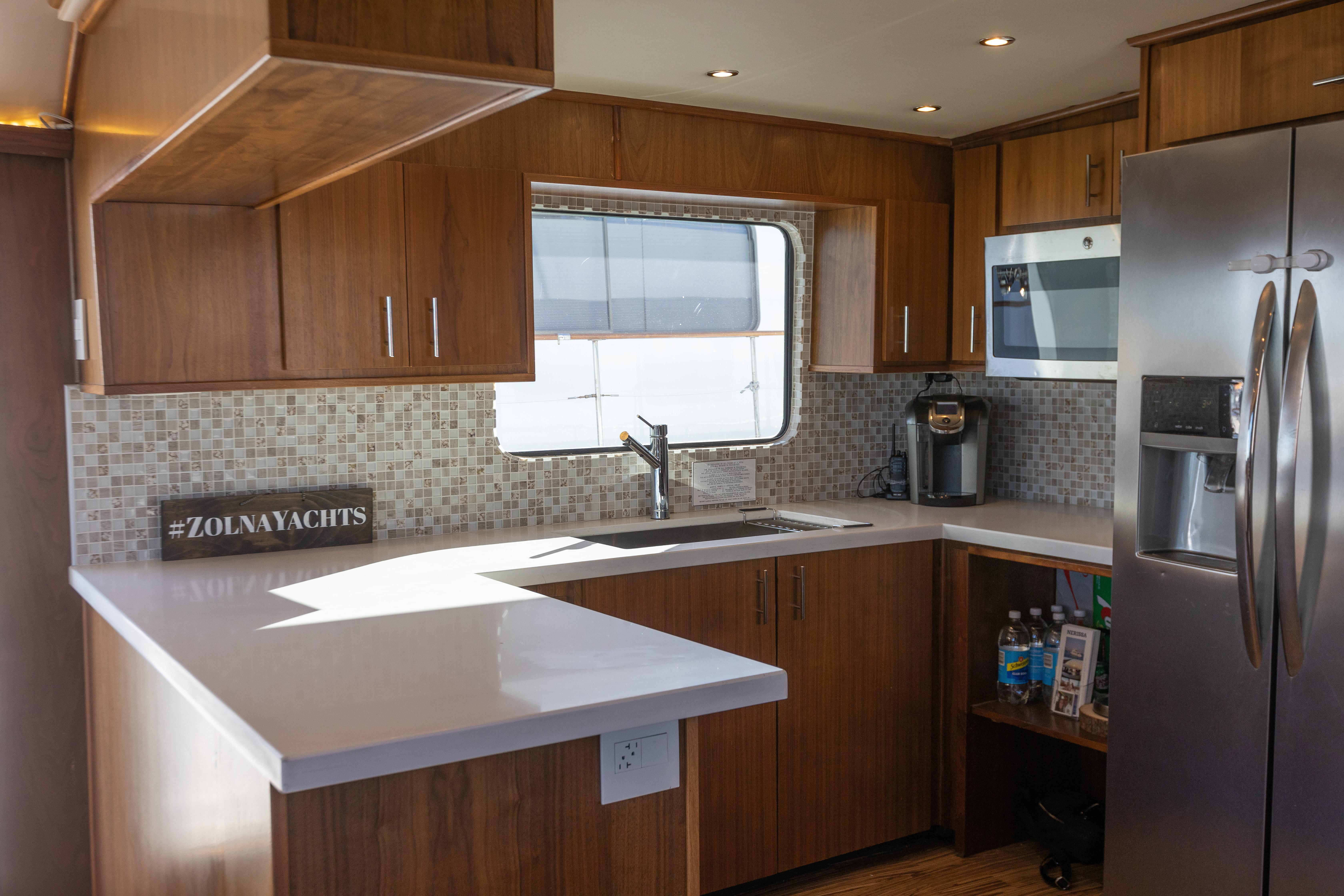 Surround sound music, spacious and 360 degree ocean views from our salon and galley. Our galley is perfect for your catering and including an onboard chef.