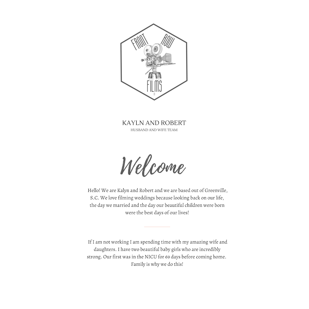 Hello! We are Robert and Kalyn, a husband and wife team. We aim to bring fantastic value along with an excellent experience for your wedding film. When Kayln and I were planning our wedding, we wanted a videographer but couldn't afford it. We strive to have affordable yet competitive pricing for our brides and grooms! We understand how precious these memories are and we'll be there every step of the way to capture them.
